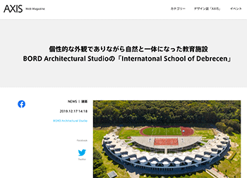 BORD Architectural Studioがデザインした、ハンガリー、デブレツェンの教育施設「International School of Debrecen」について取り上げている記事が、AXISに掲載されています。