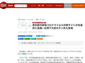 →『東京都の新型コロナウイルス対策サイトが先進的と話題–台湾IT大臣のタン氏も登場』