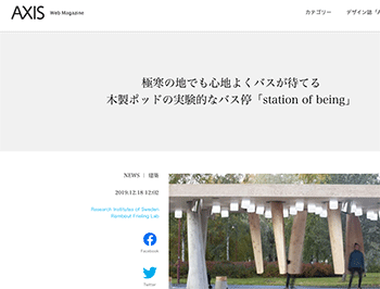 オランダのRombout Frieling Labとスウェーデンの国立研究機関「RISE」による、新しいモデルのバス停「station of being」について取り上げている記事が、AXISに掲載されています。