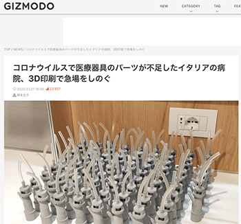 「コロナウイルスで医療器具のパーツが不足したイタリアの病院、3D印刷で急場をしのぐ」という記事が、ギズモード・ジャパンに掲載されています。