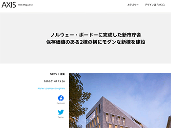 建築建築スタジオ Atelier Lorentzen Langkildeによるノルウェー・ボードーに完成した新市庁舎について取り上げている記事が、AXISに掲載されています。