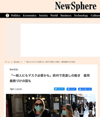 「「一般人にもマスク必要かも」欧州で見直しの動き 着用義務づけの国も」という記事が、NewSphereに掲載されています。