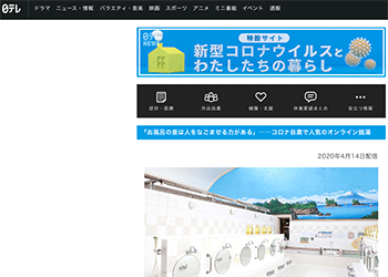アラカルト「「お風呂の音は人をなごませる力がある」――コロナ自粛で人気のオンライン銭湯」という記事が、日テレ特設サイトに掲載されています。
