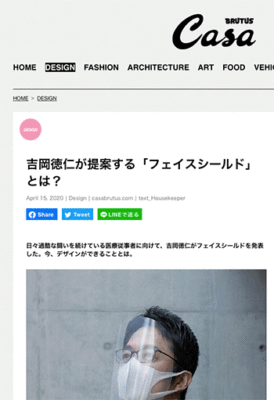 プロダクト・設備吉岡徳仁氏がフェイスシールドを発表したことを伝えている記事が、Casa BRUTUSに掲載されています。
