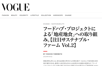 まちづくり「フードハブ・プロジェクトによる「地産地食」への取り組み。【注目サステナブル・ファーム Vol.2】」という徳島県神山町での取り組みについて取り上げている記事が、Vogue Japanに掲載されています。