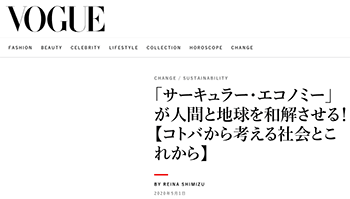 「「サーキュラー・エコノミー」が人間と地球を和解させる!【コトバから考える社会とこれから】」という記事が、Vogue Japanに掲載されています。