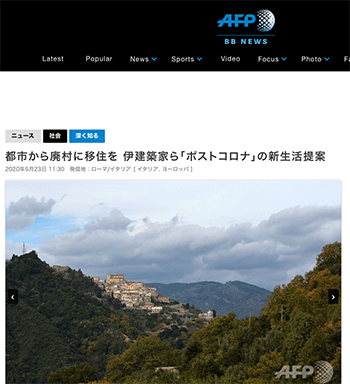 「都市から廃村に移住を 伊建築家ら「ポストコロナ」の新生活提案」というミラノの建築家ステファノ・ボエリ氏に話を聞いている記事が、AFPBB Newsに掲載されています。