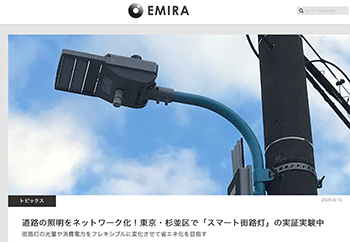 まちづくり「道路の照明をネットワーク化!東京・杉並区で「スマート街路灯」の実証実験中」という杉並区での「IoT街路灯実証実験」について取り上げている記事が、EMIRAに掲載されています。