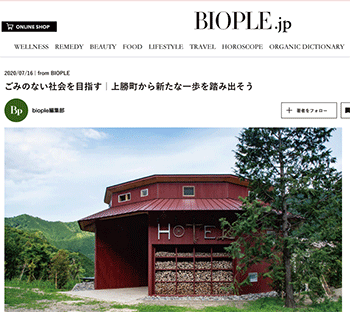 「ごみのない社会を目指す|上勝町から新たな一歩を踏み出そう」という徳島県上勝町のアクションホテル「HOTEL WHY」などについて取り上げている記事が、BIOPLE.jpに掲載されています。