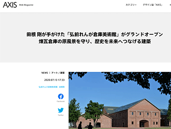 田根剛氏が手がけた「弘前れんが倉庫美術館」について取り上げている記事が、AXISに掲載されています。