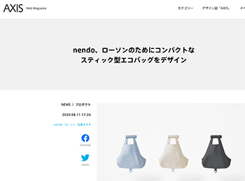 「nendo、ローソンのためにコンパクトなスティック型エコバッグをデザイン」という nendoによる、ローソンのスティック型のエコバッグについて取り上げている記事が、AXISに掲載されています。