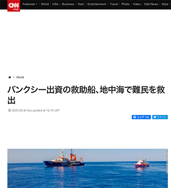 アート・展覧会「バンクシー出資の救助船、地中海で難民を救出」という記事が、CNN.co.jpに掲載されています。