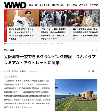 アラカルト「大阪湾を一望できるグランピング施設 りんくうプレミアム・アウトレットに開業」という記事が、WWD JAPAN.comに掲載されています。