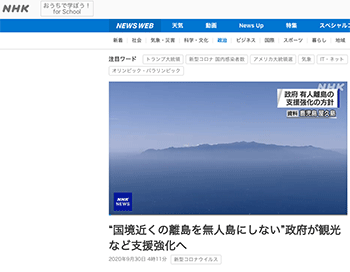「“国境近くの離島を無人島にしない”政府が観光など支援強化へ」という政府の方針について取り上げている動画ニュースが、NHKニュースにて公開されています。