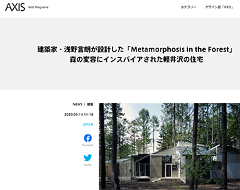 建築家で詩人の浅野言朗氏が設計した長野・軽井沢の住宅「Metamorphosis in the Forest」について取り上げている記事が、AXISに掲載されています。