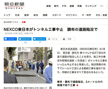 →『NEXCO東日本がトンネル工事中止 調布の道路陥没で 』