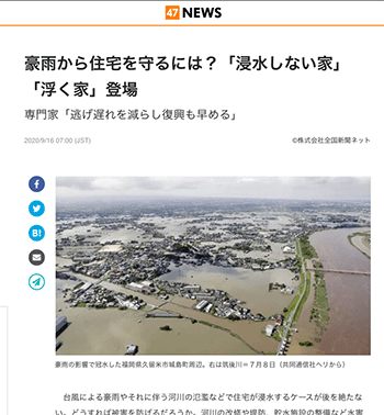 「豪雨から住宅を守るには?「浸水しない家」「浮く家」登場」という記事が、47NEWSに掲載されています。