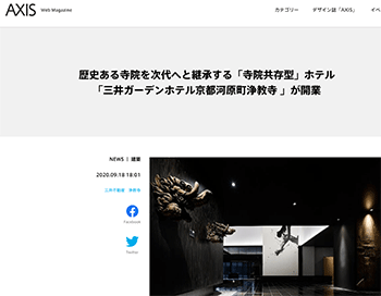 「歴史ある寺院を次代へと継承する「寺院共存型」ホテル「三井ガーデンホテル京都河原町浄教寺 」が開業」という三井ガーデンホテル京都河原町浄教寺について取り上げている記事が、AXISに掲載されています。