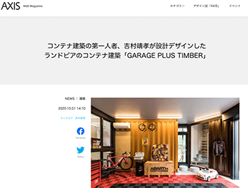「コンテナ建築の第一人者、吉村靖孝が設計デザインしたランドピアのコンテナ建築「GARAGE PLUS TIMBER」」という吉村靖孝設計によるコンテナ建築「GARAGE PLUS TIMBER」について取り上げている記事が、AXISに掲載されています。