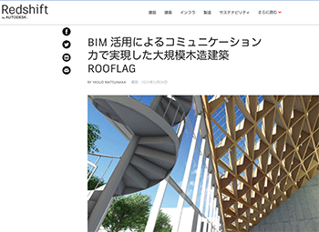 建築「BIM 活用によるコミュニケーション力で実現した大規模木造建築 ROOFLAG」という大東建託株式会社のROOFLAG賃貸住宅未来展示場などについて取り上げている記事が、redshiftに掲載されています。