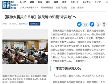 「【阪神大震災26年】被災地の知見“未災地”へ」という記事が、産経ニュースに掲載されています。