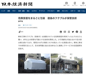 「危険家屋をまるごと包装 徳島のフクブルが保管技術」というフクブルの取り組みについて取り上げている記事が、日本経済新聞に掲載されています。