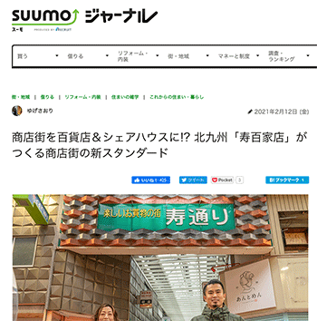 「商店街を百貨店&シェアハウスに!? 北九州「寿百家店」がつくる商店街の新スタンダード」という福岡県北九州市黒崎の「寿通り商店街」での取り組みについて取り上げている記事が、スーモジャーナルに掲載されています。