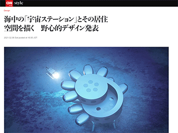 「海中の「宇宙ステーション」とその居住空間を描く 野心的デザイン発表」という潜水技術者のファビアン・クストー氏と工業デザイナーのイヴ・ベアール氏による海底研究所兼居住施設「プロテウス」計画について取り上げている記事が、CNN.co.jpに掲載されています。