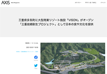 まちづくり三重県多気町に開業する商業リゾート施設「VISON(ヴィソン)」について取り上げている記事が、AXISに掲載されています。