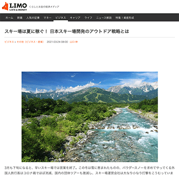 アラカルト「スキー場は夏に稼ぐ! 日本スキー場開発のアウトドア戦略とは」という記事が、LIMOに掲載されています。