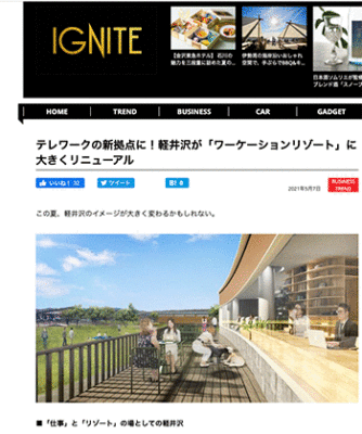 まちづくり「テレワークの新拠点に!軽井沢が「ワーケーションリゾート」に大きくリニューアル」というプリンスグランドリゾート軽井沢の取り組みについて取り上げている記事が、IGNITEに掲載されています。