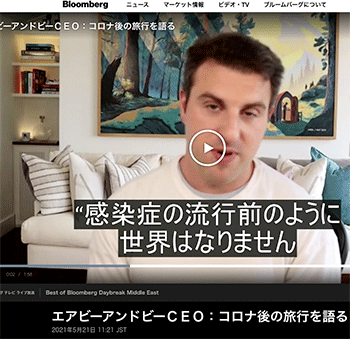 「エアビーアンドビーCEO:コロナ後の旅行を語る」という動画ニュースが、Bloombergにて公開されています。