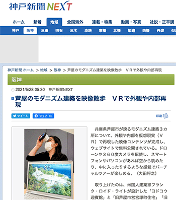 「芦屋のモダニズム建築を映像散歩 VRで外観や内部再現」というハコスコと芦屋市による「芦屋のモダニズム建築VR」について取り上げている記事が、神戸新聞NEXTに掲載されています。