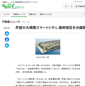 「芦屋の大規模スマートシティ、最終街区を分譲開始」というパナソニック ホームズの取り組みについて取り上げている記事が、R.E.portに掲載されています。