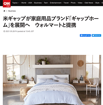 「米ギャップが家庭用品ブランド「ギャップホーム」を展開へ ウォルマートと提携」という記事が、CNN.co.jpに掲載されています。