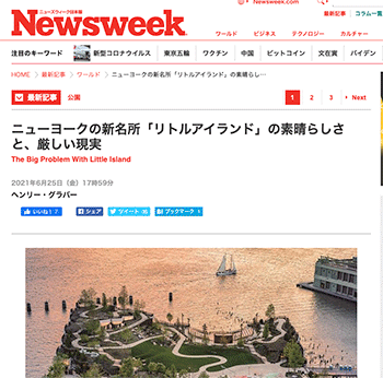 まちづくり「ニューヨークの新名所「リトルアイランド」の素晴らしさと、厳しい現実」という記事が、ニューズウィーク日本版に掲載されています。
