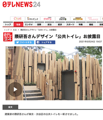 「隈研吾さんデザイン「公共トイレ」お披露目」という隈研吾さんがデザインした公共トイレ「森のコミチ」について取り上げている動画ニュースが、日テレNEWS24にて公開されています。