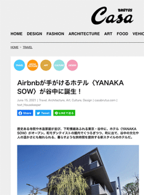 「Airbnbが手がけるホテル〈YANAKA SOW〉が谷中に誕生!」という記事が、カーサ ブルータスに掲載されています。