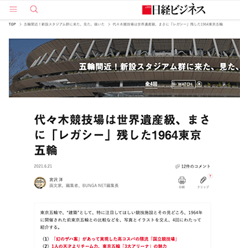 「代々木競技場は世界遺産級、まさに「レガシー」残した1964東京五輪」という記事が、日経ビジネスに掲載されています。