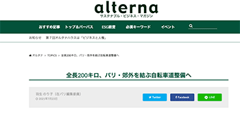 「全長200キロ、パリ・郊外を結ぶ自転車道整備へ」というフランスでの取り組みについて取り上げている記事が、オルタナに掲載されています。