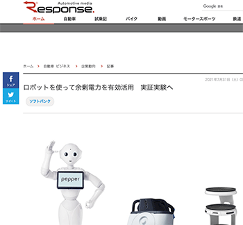 「ロボットを使って余剰電力を有効活用 実証実験へ」というSBエナジー、ソフトバンクロボティクス、東急不動産による取り組みについて取り上げている記事が、レスポンスに掲載されています。