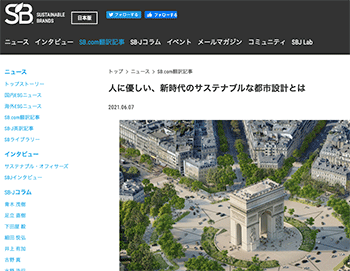 「人に優しい、新時代のサステナブルな都市設計とは」という記事が、SUSTAINABLE BRANDS JAPANに掲載されています。