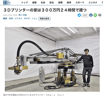 住宅「3Dプリンターの家は300万円24時間で建つ」という各企業の取り組みについて取り上げている記事が、産経ニュースに掲載されています。