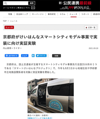 「京都府がけいはんなスマートシティモデル事業で実装に向け実証実験」という京都府での取り組みについて取り上げている記事が、新・公民連携最前線|PPPまちづくりに掲載されています。