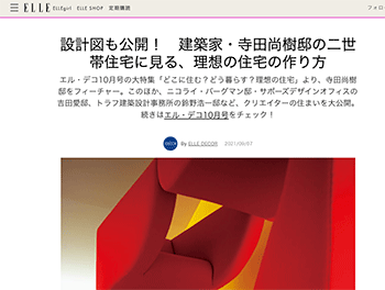 「設計図も公開! 建築家・寺田尚樹邸の二世帯住宅に見る、理想の住宅の作り方」という寺田尚樹邸について取り上げている記事が、elleに掲載されています。