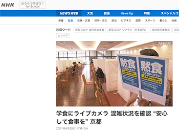 「学食にライブカメラ 混雑状況を確認 “安心して食事を” 京都」という京都産業大学での取り組みについて取り上げている記事が、NHKニュースに掲載されています。