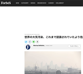 ジャーナル「世界の大気汚染、これまで認識されていたより危険 WHOが報告」という記事が、Forbes JAPANに掲載されています。