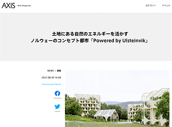 「土地にある自然のエネルギーを活かすノルウェーのコンセプト都市「Powered by Ulsteinvik」」という建築スタジオ Kaleidoscope Nordicが手がけるノルウェーのコンセプト都市「Powered by Ulsteinvik」を取り上げている記事が、AXISに掲載されています。