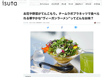 「お花や野菜がてんこもり。チームラボプラネッツで食べられる華やかな“ヴィーガンラーメン”ってどんなお味?」という記事が、isutaに掲載されています。