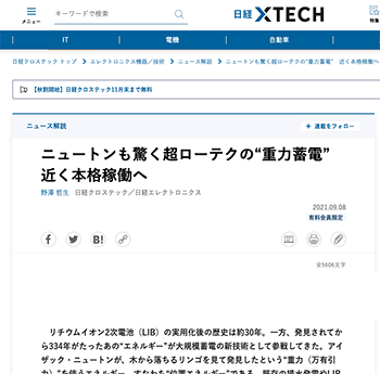 プロダクト・設備「ニュートンも驚く超ローテクの“重力蓄電” 近く本格稼働へ」という記事が、日経クロステックに掲載されています。